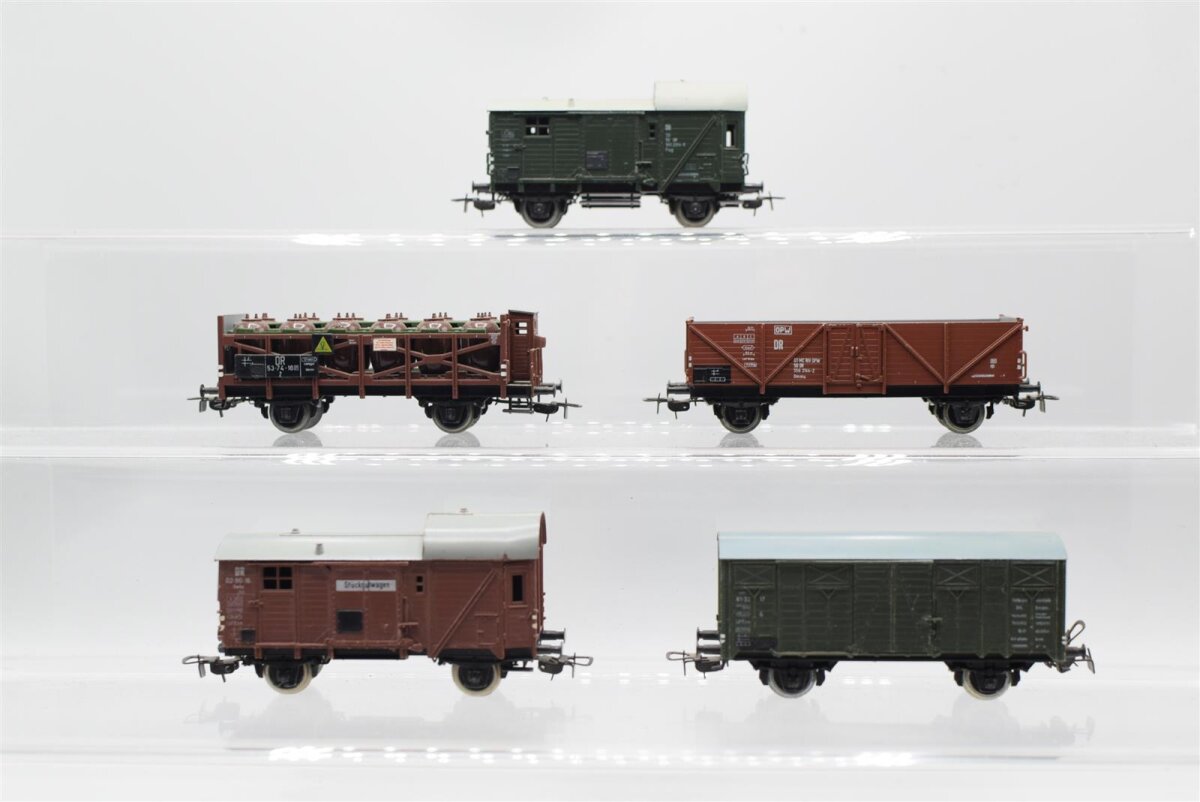 ANGEBOT Piko H0 Güterzugbegleitwagen, Hochbordwagen, Säurefaßwagen, Gedeckter Güterwagen, DR