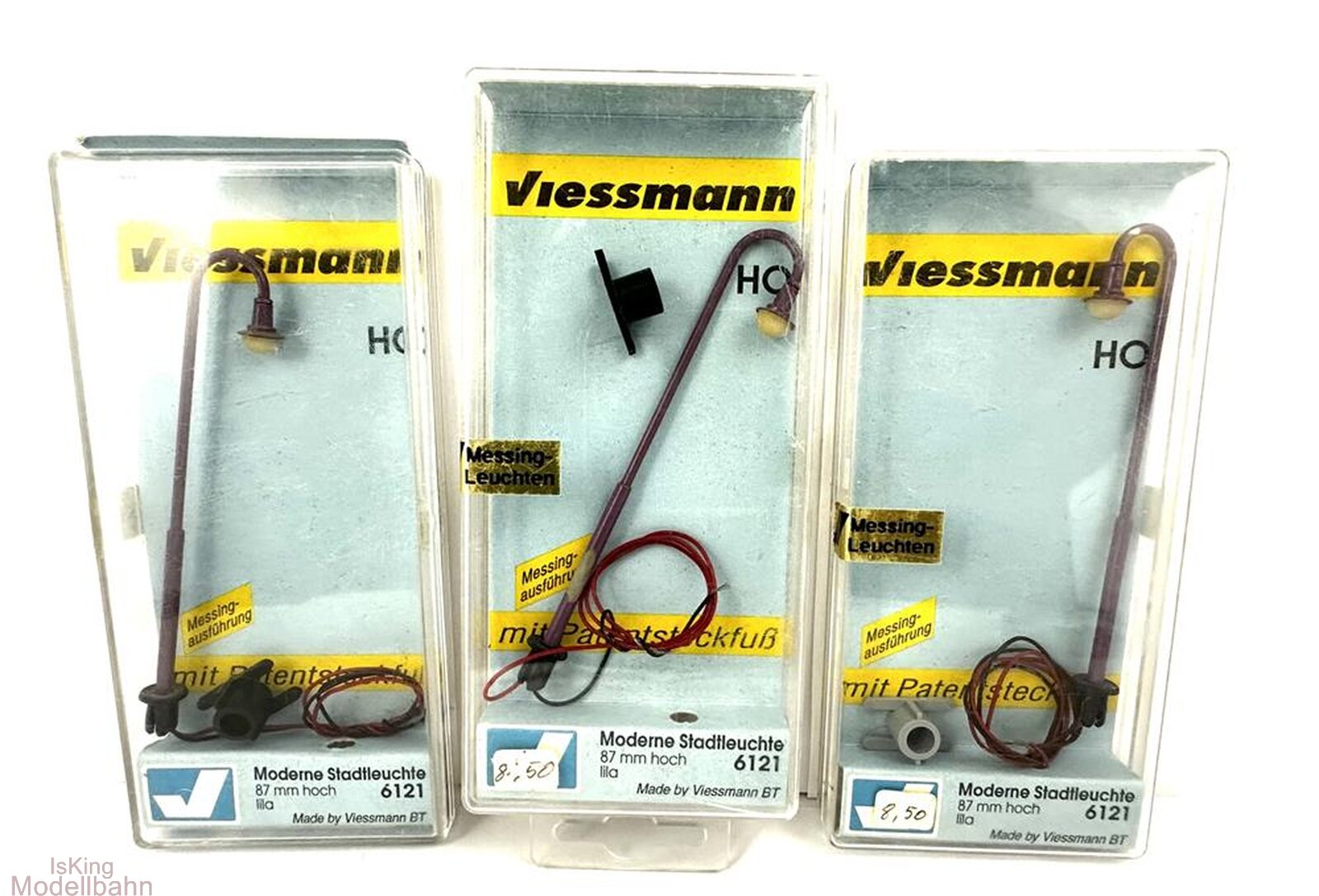Viessmann 6121 H0 3x Stadtleuchte lila 87 mm