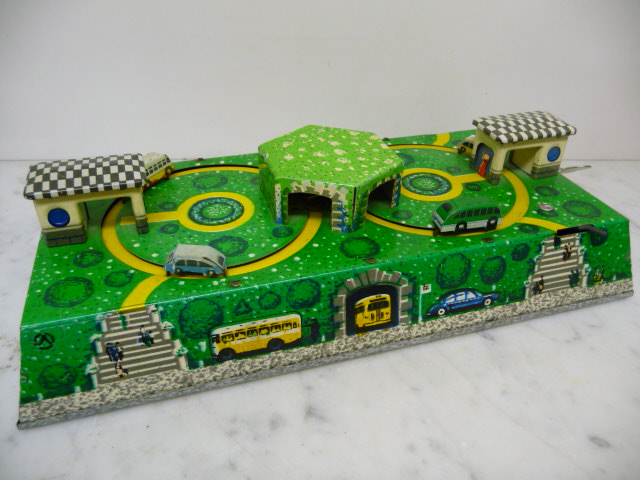 ANGEBOT Blech Verkehrsspiel Achterbahn mit 6 Autos 50er Jahre