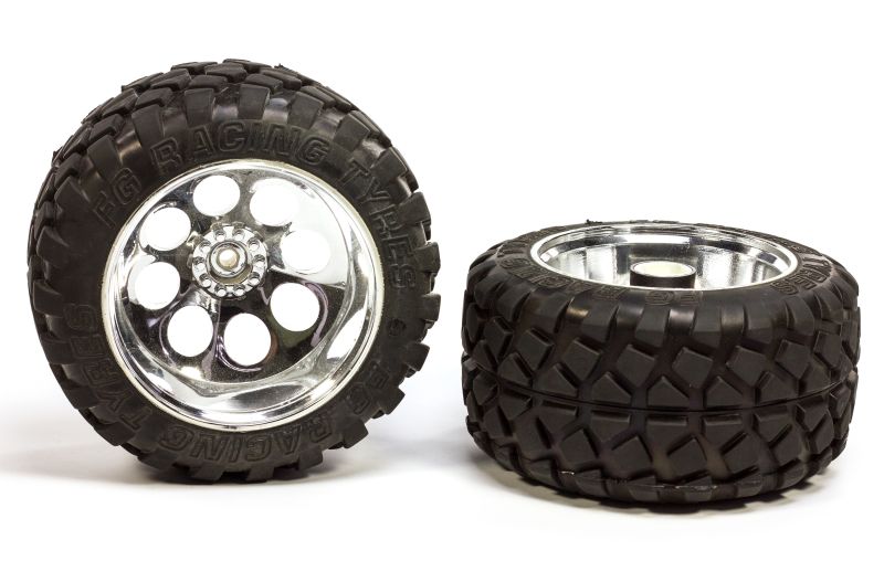 6230/07 FG Stadium-Truck Reifen M verklebt, Chrom Felgen, 18 mm – 2St.