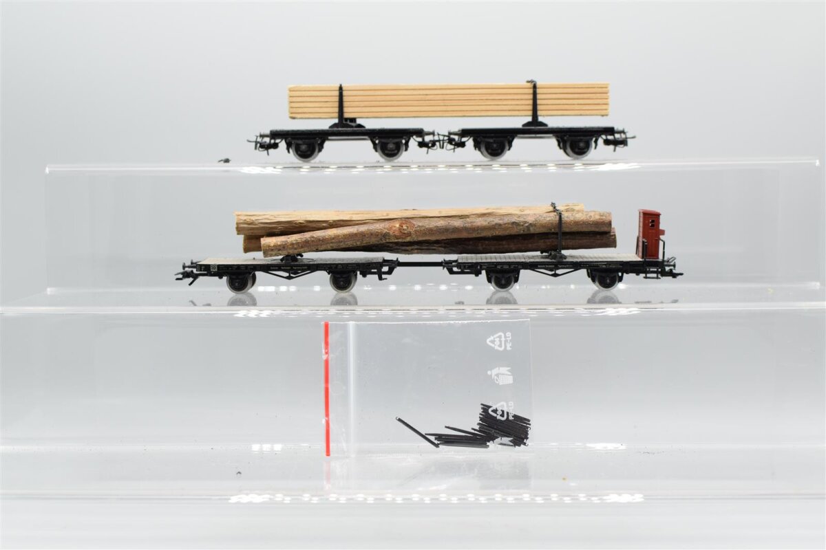 ANGEBOT Märklin H0 Konvolut Drehschemelwagen mit Ladung „Holzbalken“; Drehschemelwagen mit BrHs und Ladung „Baumstämme“; DR/u.a (17008873)