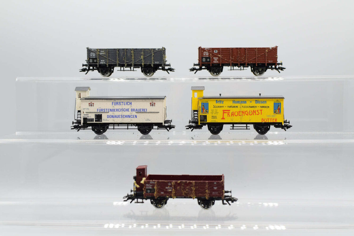 ANGEBOT Märklin H0 Konvolut Hochbordgüterwagen (teilw. mit BrHs); Gedeckte Güterwagen mit BrHs „Frauengunst Butter“, „Fürstenbergische Brauerei“; Länderbahnen (17008603)