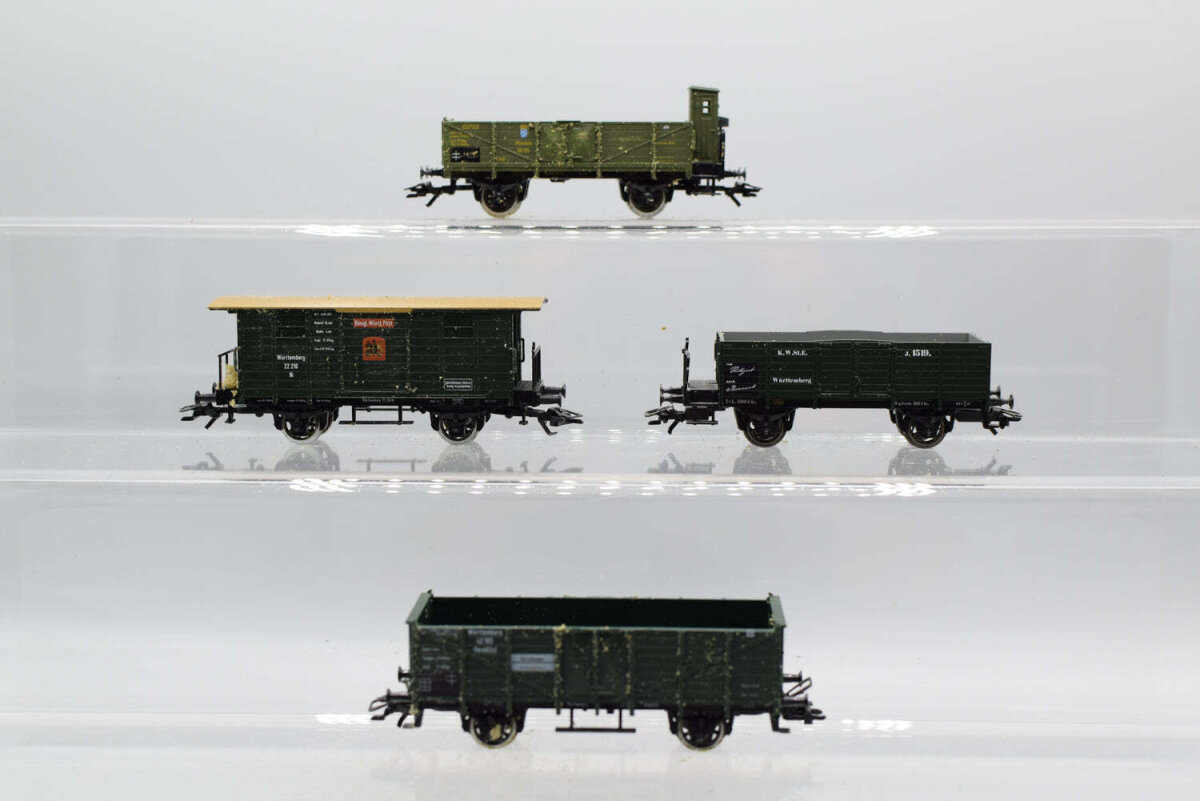 ANGEBOT Märklin H0 Konvolut Hochbordgüterwagen (teilw. mit BrHs); Gedeckter Güterwagen; grün, Länderbahnen (17008630)