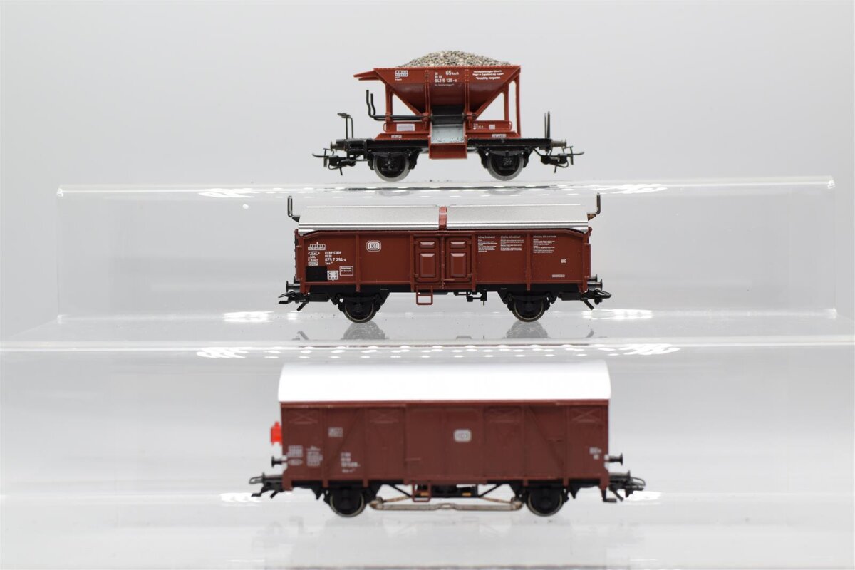 ANGEBOT Märklin H0 Konvolut Klappdeckelwagen; Gedeckter Güterwagen mit Zugschluß-Laterne; Schotterwagen mit Ladung; braun, DB (17009273)