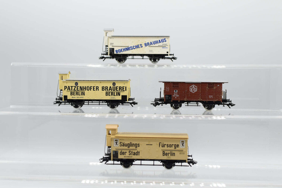 ANGEBOT Märklin H0 Konvolut Kühlwagen mit BrHs „Boehmisches Brauhaus“, „Patzenhofer Brauerei“, “ Säuglings-Fürsorge Berlin“; Gedeckter Güterwagen „AEG“; Länderbahnen (17008602)