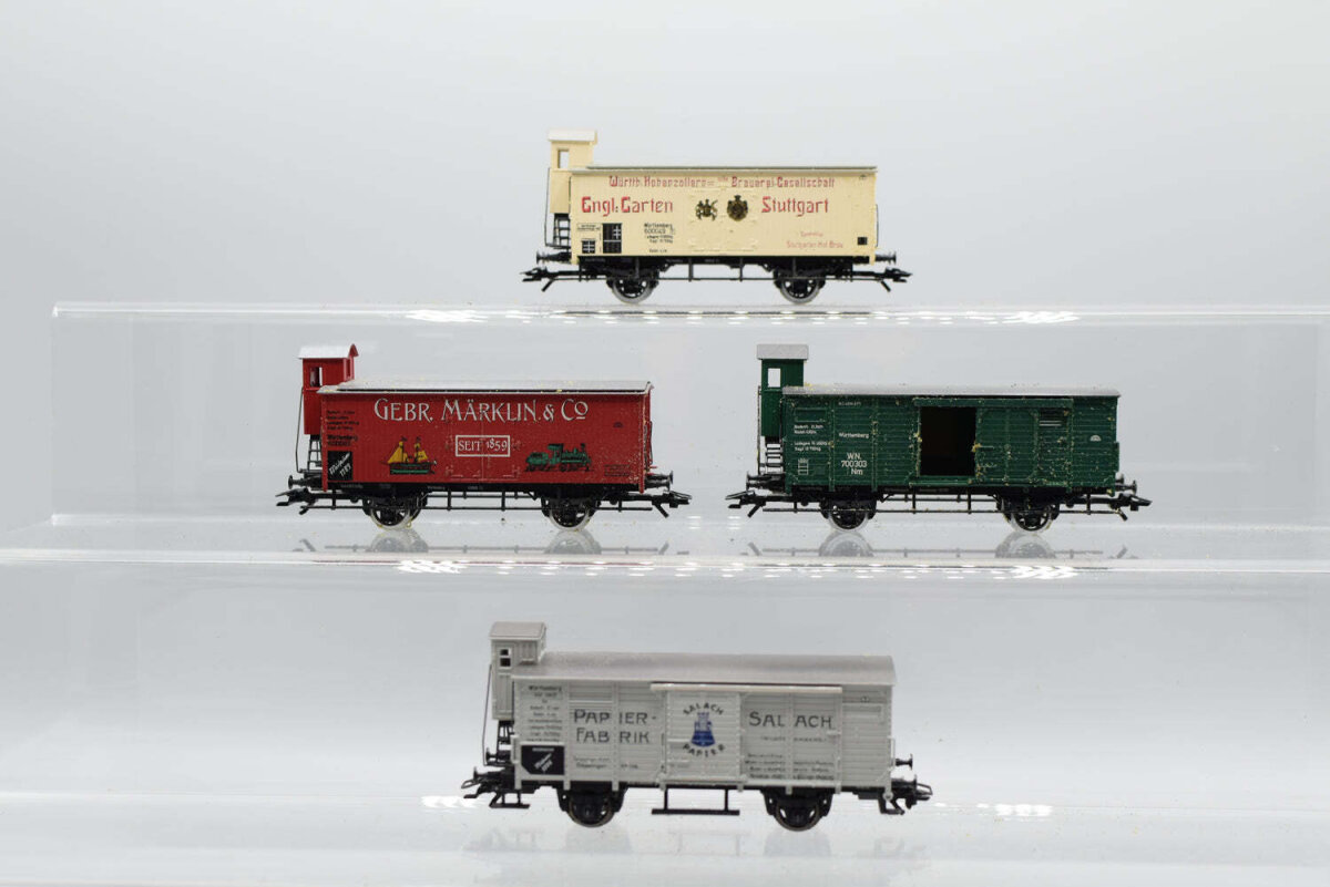ANGEBOT Märklin H0 Konvolut Kühlwagen mit BrHs „Brauerei Engl. Garten“, “ Gebr. Märklin“; Gedeckte Güterwagen mit BrHs „Papierfabrik Salach“; Länderbahnen (17008606)