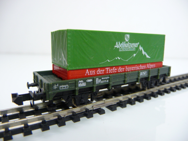 ANGEBOT Minitrix N 13590 Niederbordwagen 327 3 377-6 mit Container ADELHOLZENER