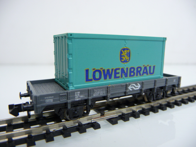 ANGEBOT Minitrix N 13880 NS Flachwagen 402 7 500-4 mit LÖWENBRÄU Container
