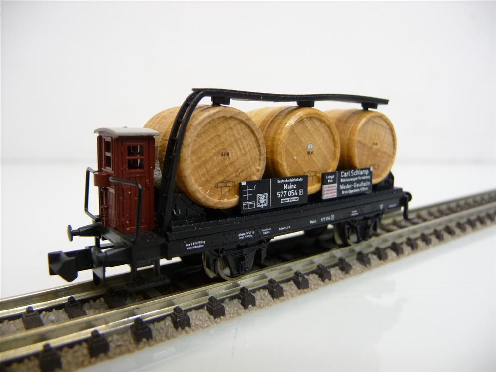 ANGEBOT Minitrix N 13808 Wein-Transportwagen mit Brhs mit 3 Holzfässern, ´Carl Schlamp´