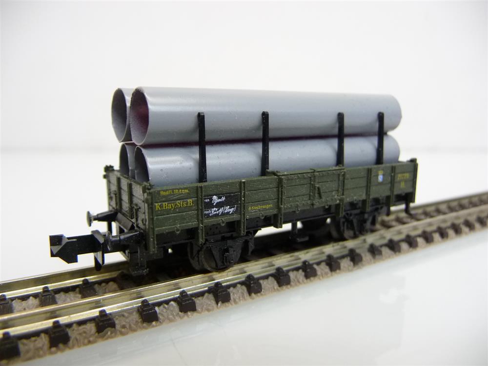 ANGEBOT Minitrix N 13234 Niederbordwagen mit Rungen, Gattung H, 2-achsig, grün