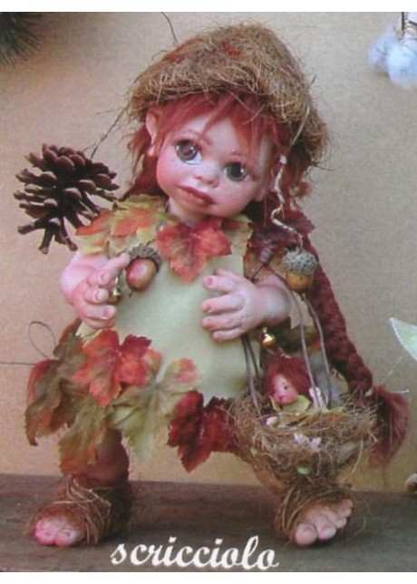 Porzellanpuppe, Elfe Kobold Scricciolo mit Welpe günstig