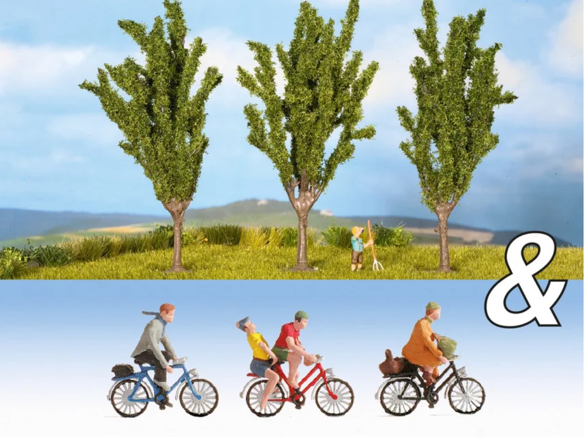 Ausschmückungs-Set Fahrradfahrer und Pappeln HO