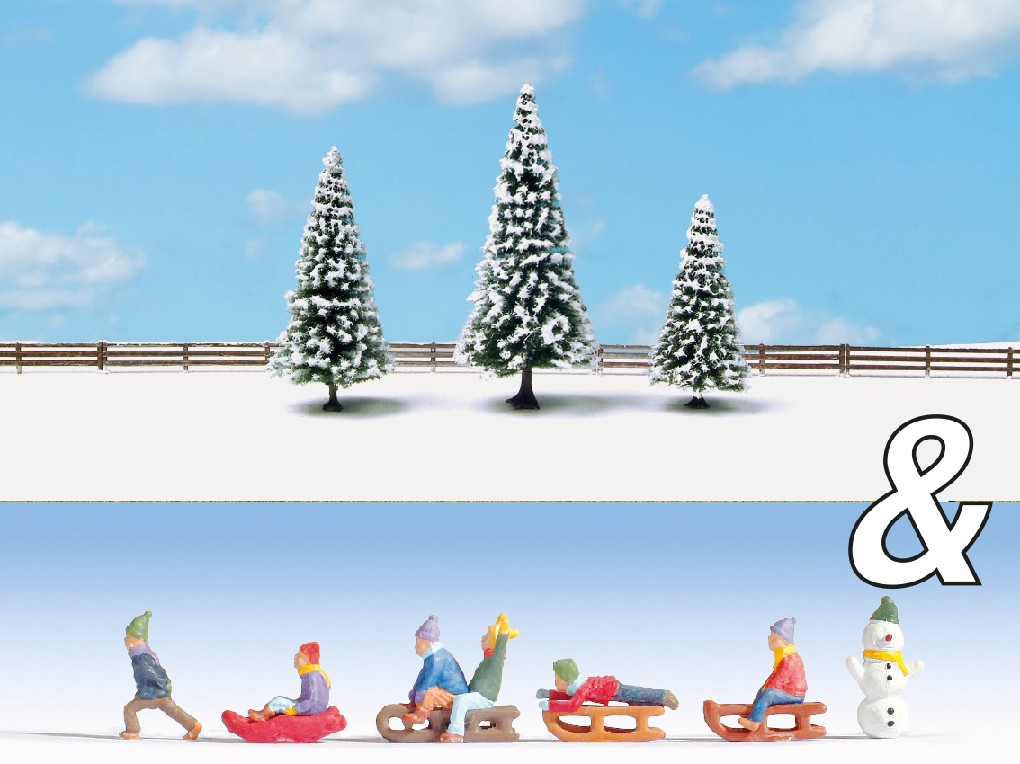 Ausschmückungs-Set Kinder im Schnee und Schnneetannen HO
