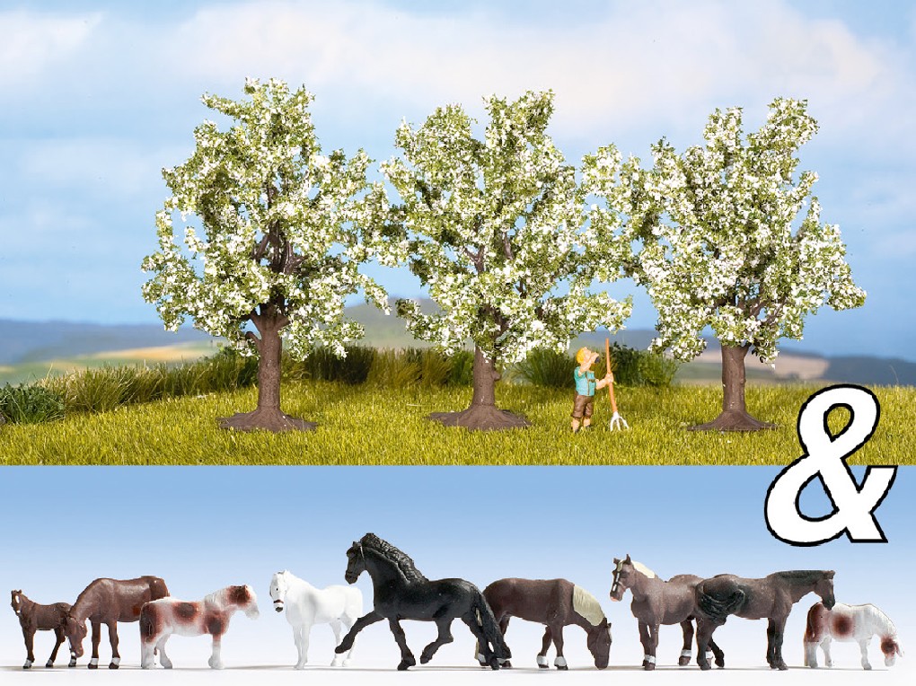 Ausschmückungs-Set Pferde und Obstbäume HO