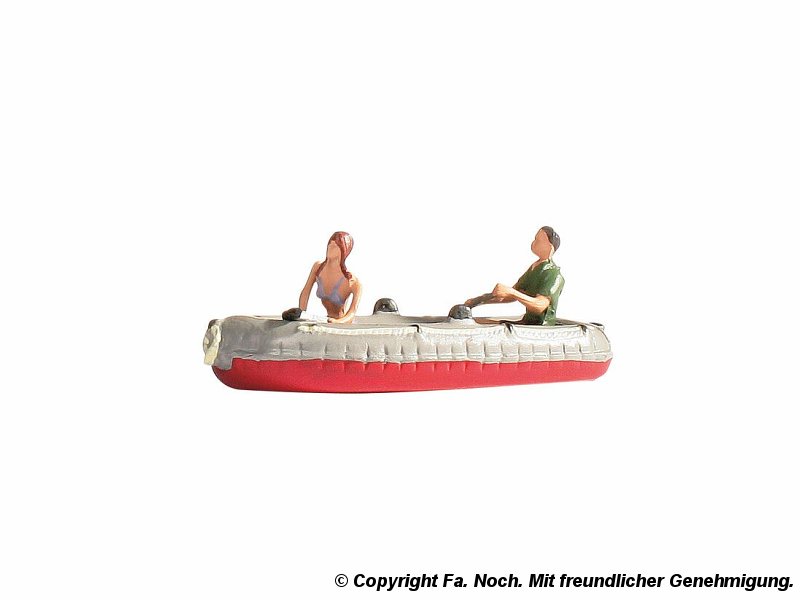 Noch Schlauchboot in silber mit Figuren und Paddeln 37815