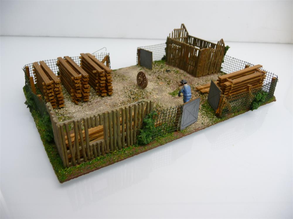 ANGEBOT Privates kleines Holzlager mit Zaun und Figur H0