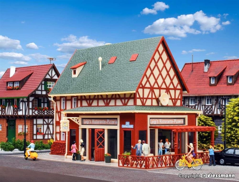 ANGEBOT Vollmer 43681 H0 Luigi´s Pizzeria mit Inneneinrichtungund LED-Beleuchtung, Funktionsbausatz