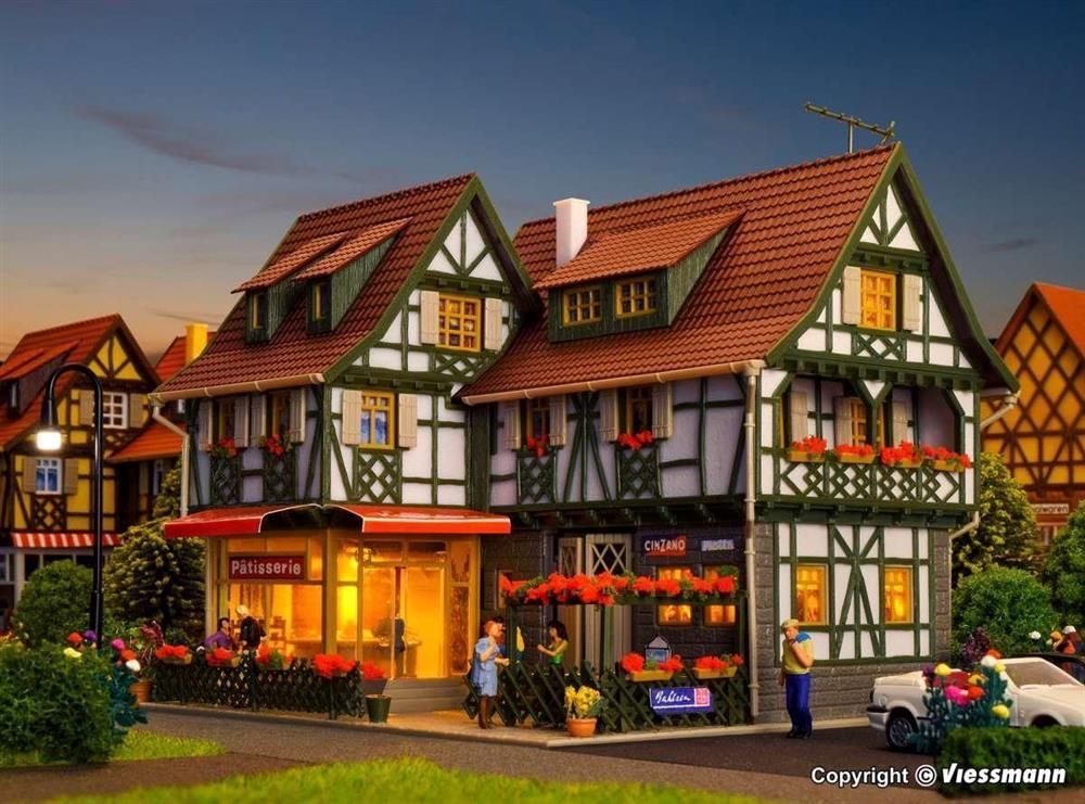 ANGEBOT Vollmer 43683 H0 Konditorei mit Eissalon, Inneneinrichtung undLED-Beleuchtung, Funktionsbausatz