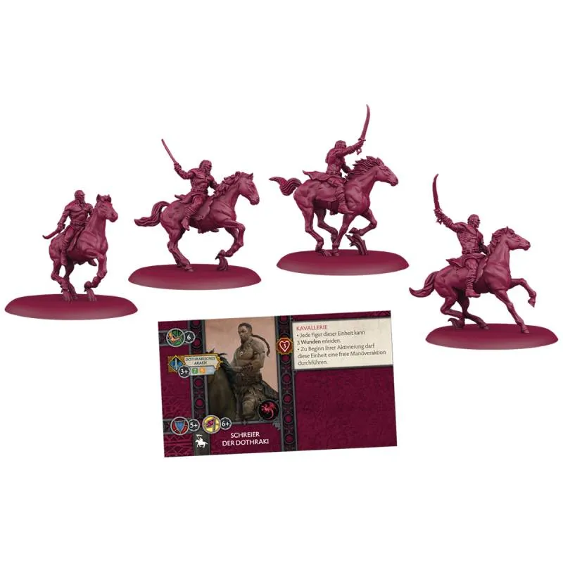Die Dothraki Screamers bietet Targaryen Kommandanten eine solide Kavallerieeinheit für ihre Streitkräfte. Diese furchterregenden Kämpfer können schnell in die Schlacht stürmen und tödliche Schläge austeilen. Erfahrene Kommandeure werden sie als blitzschnelle Schlagkraft einsetzen, um sie nicht in langwierige Kämpfe zu verwickeln.