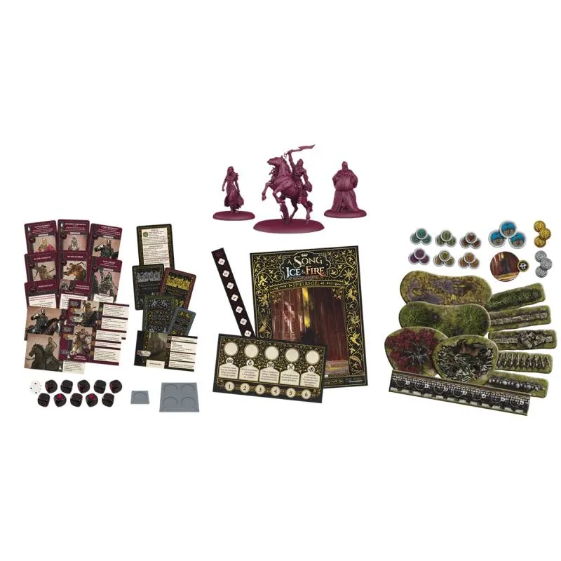 A Song of Ice & Fire bringt epische Schlachten, politische Intrigen und die ikonischen Charaktere ais George R. R. Martins erfolgreichen Romanen auf den Spieltisch. Kommandiere mit Hilfe detaillierter und vormontierter Miniaturen sowie Bewegungstableaus die Armeen und Helden der großen Häuser von Westeros in mehreren einzigartigen Spielmodi bei ihrem Kampf um den Eisernen Thron.