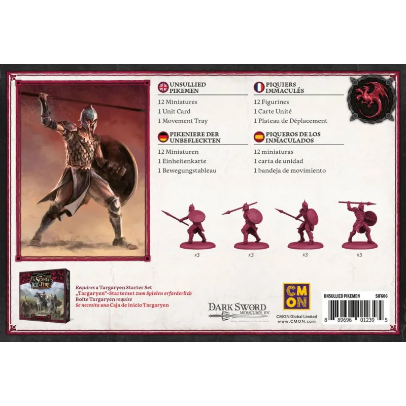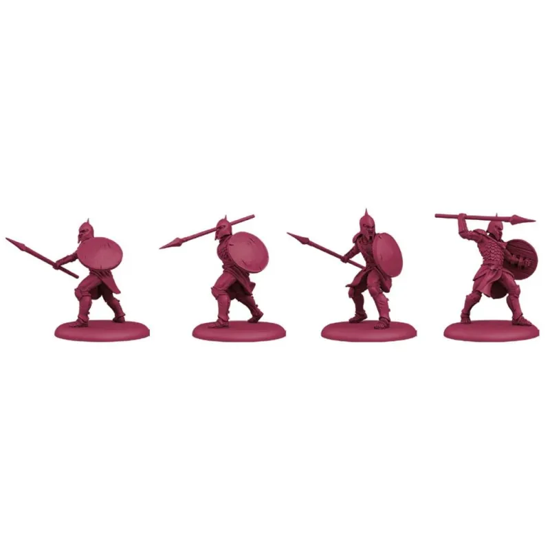 Die Unsullied Pikemen bietet Haus Targaryen Spielern eine starke Nahkampfeinheit auf dem Spielfeld. Trotz ihrer leichten Rüstung brauchen sich die Unbefleckten, die nach den Doktrinen des Alten Reiches von Ghis im Gleichschritt vorrücken, vor keinem Gegenangriff von den Flanken oder sogar von hinten fürchten. Wenn es eine Einheit gibt, die eine kurze Einkesselung überstehen kann, dann sind es wohl die Unsullied Pikemen.