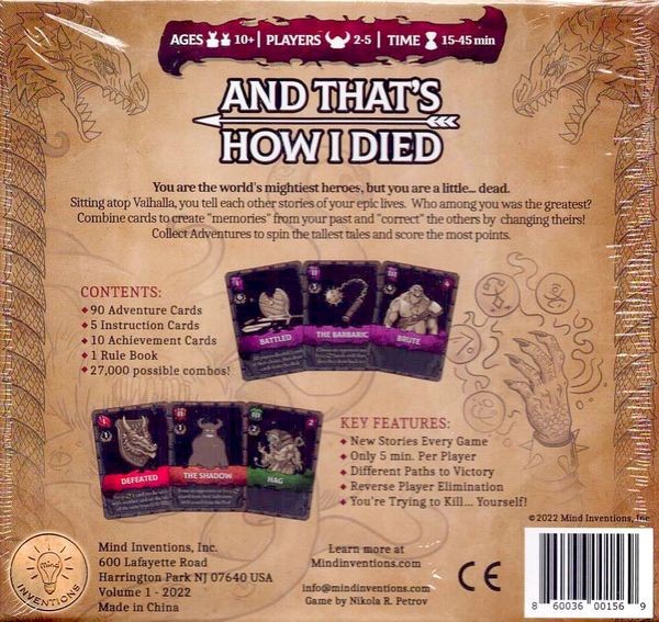 You are the world’s mightiest heroes, but you are a little…dead. Sitting atop Valhalla, you tell each other stories of your epic lives. Who among you was the greatest? Combine cards to create „memories“ from your past and „correct“ the others by changing theirs! Collect Adventures to spin the tallest tales and score the most points.