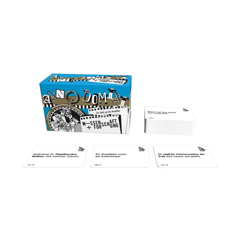 Bei Anno Domini müssen Ereignisse in die richtige zeitliche Abfolge gebracht werden. Es kommt dabei jedoch nicht auf exaktes Wissen an. Denn wer weiß schon, ob etwa „Wasser auf dem Mond nachgewiesen wurde“ bevor oder nachdem „Fracking zur Erdölförderung patentiert wurde“. Wer gut bluffen kann hat beste Chancen seine Karten als Erster loszuwerden und damit zu gewinnen. Die richtige Mischung aus bekannten und kuriosen Ereignissen garantiert jede Menge Spaß für die ganze Familie.