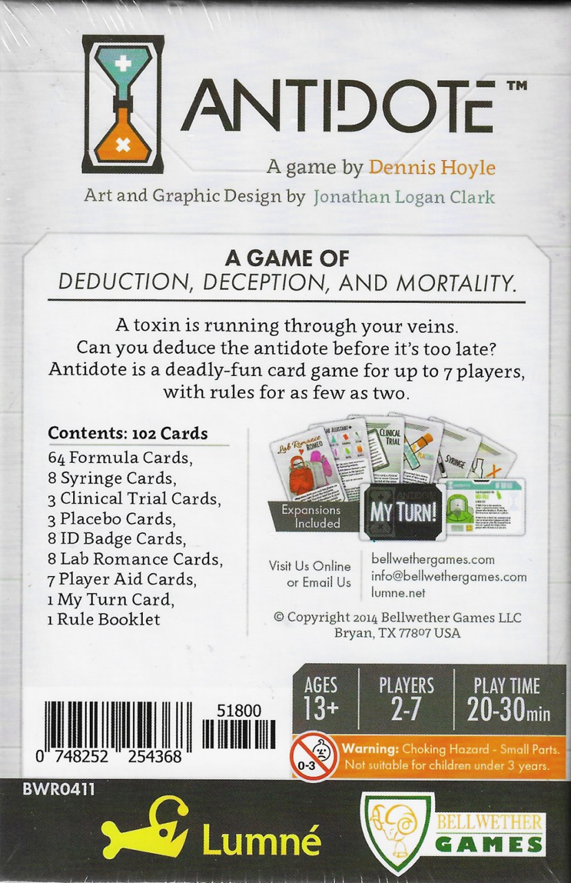 From Bellwether Games: In Antidote , you are a laboratory scientist working for a giant… mehr Menü schließen Produktinformationen „Antidote“