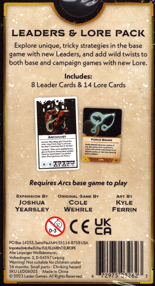 Produkteigenschaften Zu den Produkteigenschaften mehr Menü schließen Produktinformationen „Arcs: Leaders and Lore Pack“