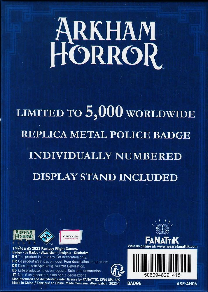 Produkteigenschaften Zu den Produkteigenschaften mehr Menü schließen Produktinformationen „Arkham Horror: Replica Police Badge“