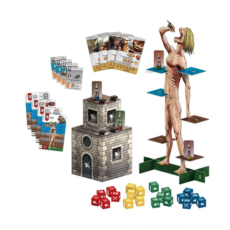 Attack on Titan:Das letzte Gefecht basiert auf der erfolgreichen Anime-Serie Attack on Titan. Einer der Spieler übernimmt die Rolle eines furchteinflößenden Titanen, der die letzte Stadt der Menschen bedroht. Die anderen Spieler agieren als die tapferen Helden, die die Schwachen beschützen und das Versorgungslager in der letzten Festung der Menschen retten müssen. Attack on Titan ist ein kooperatives Kennerspiel für 2-5 Spieler, wobei ein Spieler die Rolle des Titanen übernimmt und der Rest der Spieler in die Rollen der Helden schlüpft.