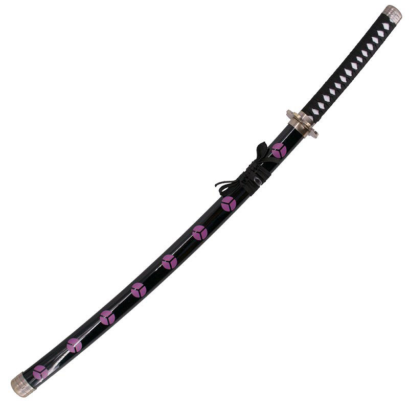 Bambus Katana Shuusui One Piecemit schwarz-roter Bambusklinge und lila Akzenten.
