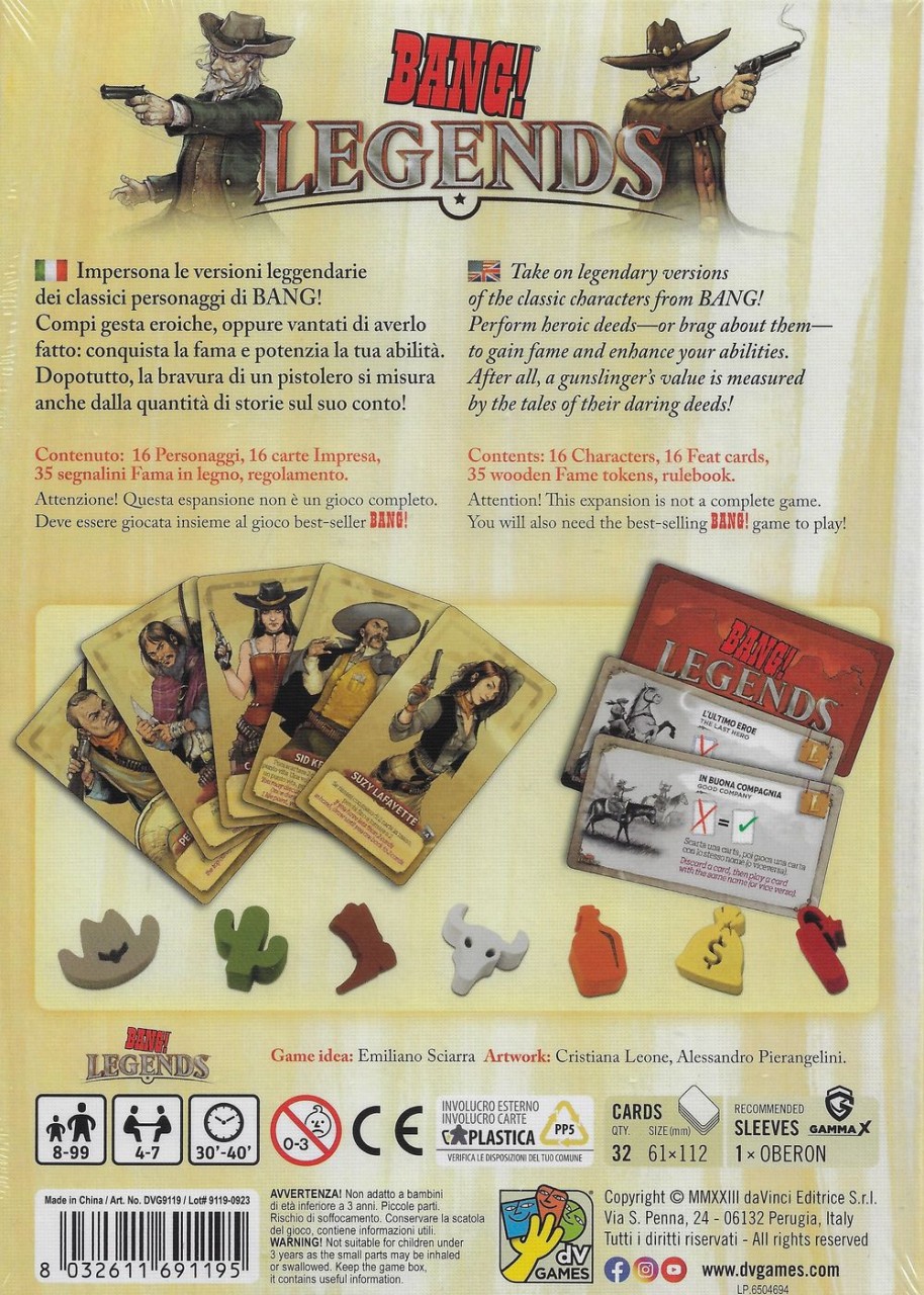 BANG! Legendsis an expansionthat lets you play as a “Legendary” version of the classic BANG! characters and discover new lethal abilities. But be careful: Only by completing amazing feats (or by boasting about them!) can you enter into Legend!