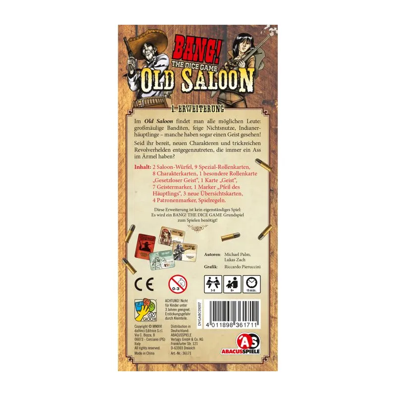 Dieses Spiel ist eine Erweiterung und kann nur zusammen mit dem Grundspiel Bang! – The Dice Game gespielt werden!