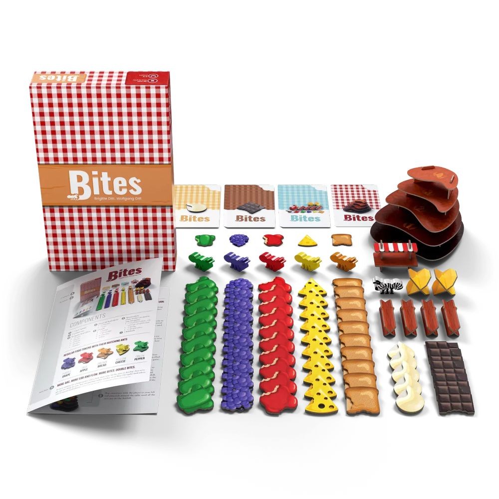 Besides the game play, these tokens are the thing in Bitesthat we are most proud of. No one has ever done something quite like this in a board game. With dual layer tokens, both layers are uniquely cut, so the food tokens are truly 3 dimensional, and feel like bites have been taken out.