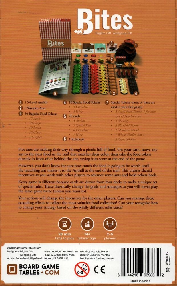 The thrilling element of the game is planning how you can maximize the food tokens you collect, while also remaining flexible to the positions of the other ants as well as the tokens the other players have gathered.