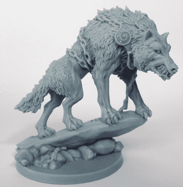 Board Game Geek Rating:7.92 Board Game Geek Avg Player Rating:8.13 Players:2 to 4 Published:2015 Content Notes:Kickstarter Exclusive Promo Figure Fenrir for the board game Blood Rage. Includes one unpainted pre-primed plastic miniature. Please note: unless otherwise stated paid add ons from the Kickstarter Campaign are not included. „Life is Battle; Battle is Glory; Glory is ALL“ In Blood Rage, each player controls their own Viking clan’s warriors, leader, and ship. RagnarÖk has come, and it’s the end of the world! It’s the Vikings’ last chance to go down in a blaze of glory and secure their place in Valhalla at Odin’s side! For a Viking there are many pathways to glory. You can invade and pillage the land for its rewards, crush your opponents in epic battles, fulfill quests, increase your clan’s stats, or even die gloriously either in battle or from RagnarÖk, the ultimate inescapable doom. Most player strategies are guided by the cards drafted at the beginning of each of the three game rounds (or Ages). These “Gods’ Gifts” grant you numerous boons for your clan including: increased Viking strength and devious battle strategies, upgrades to your clan, or even the aid of legendary creatures from Norse mythology. They may also include various quests, from dominating specific provinces, to having lots of your Vikings sent to Valhalla. Most of these cards are aligned with one of the Norse gods, hinting at the kind of strategy they support. For example, Thor gives more glory for victory in battle, Heimdall grants you foresight and surprises, Tyr strengthens you in battle, while the trickster Loki actually rewards you for losing battles, or punishes the winner. Players must choose their strategies carefully during the draft phase, but also be ready to adapt and react to their opponents’ strategies as the action phase unfolds. Battles are decided not only by the strength of the figures involved, but also by cards played in secret. By observing your opponent’s actions and allegiances to specific gods, you may predict what card they are likely to play, and plan accordingly. Winning battles is not always the best course of action, as the right card can get you even more rewards by being crushed. The only losing strategy in Blood Rage is to shy away from battle and a glorious death!