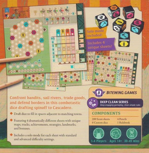 The differences between Cascadito and its older sibling, Cascadero, are wonderfully potent and a joy to explore. The dice drafting requires careful planning and prediction of what you and your opponents most need. The different sheets boast many new features and challenges not found in the larger board game. Cascadito is also faster, more portable, and solo playable.