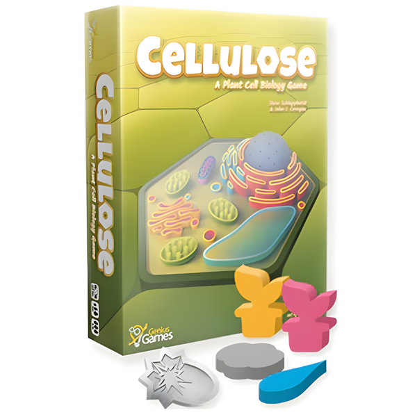 Board Game Geek Avg Player Rating:6.14 Players:1 to 5 Published:2021 Content Notes:Kickstarter Exclusive Collector’s Edition of Cellulose Board Game by Genius Games. Includes core game, metal ATP coins, custom wooden markers and tokens, and all unlocked stretch goals. Please note: unless otherwise stated paid add ons from the Kickstarter Campaign are not included. Cellulose: A Plant Cell Biology Game is a worker placement game that puts 1-5 players inside a plant cell, where they will compete over limited resources in order to undergo photosynthesis, produce carbohydrates, and build the cell wall. With everyone vying for the same actions, players must time their use of proteins, hormones, and cell component cards in order to diversify their strategies and outplay the competition. Cellulose is the standalone sequel to Cytosis (2017). It has some of the same DNA, but Cellulose expands familiar game systems, allowing players greater control over available resources, strategic paths, and even game length. –description from the publisher