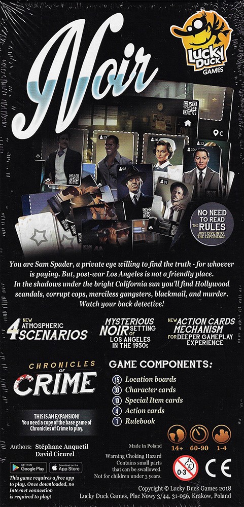 from Lucky Duck Games: Noir is an expansion authored by Stephane Anquetil, a very… mehr Menü schließen Produktinformationen „Chronicles of Crime: Noir (Expansion)“