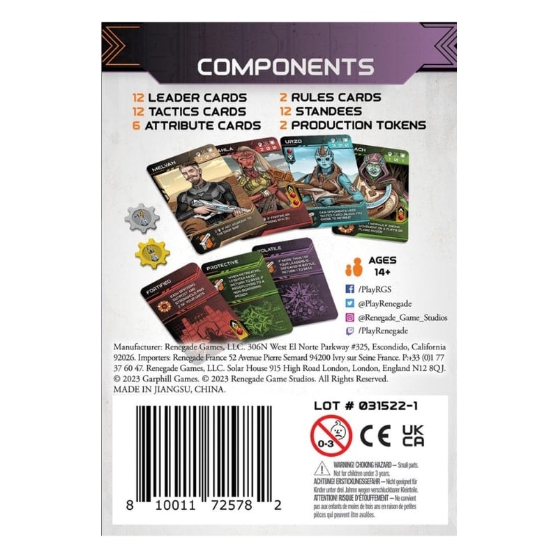Diese Mini-Erweiterung für Chaos Order fügt 12 Anführerkarten, 6 Attributkarten, 12 Taktikkarten und 2 neue Produktionsmarken hinzu.