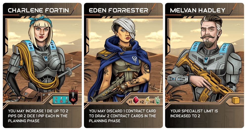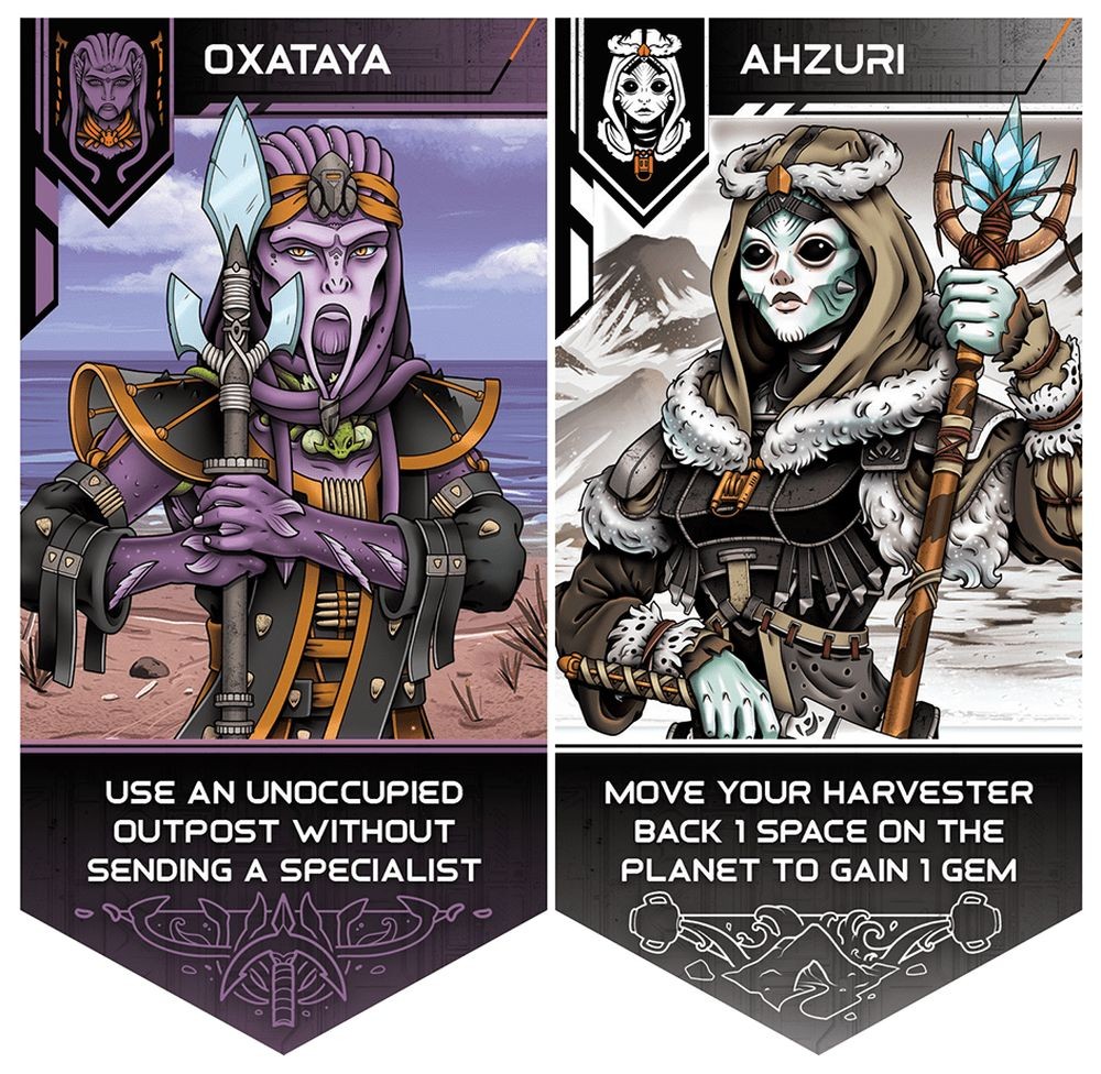 The Specialists Expansionadds two new local factions for players to negotiate with, a temple location to visit, and outpost boards to extend their research bases. It also adds a lot of new characters (variable player powers) and contract cards, and the new, powerful specialist dice.