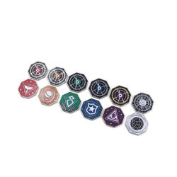 Manchmal ist es schwierig im Blick zu behalten wie viele Aktionen man bereits verbraucht hat und wie viele noch zur Verfügung stehen. Dank dieser Action Tracker behaltet ihr eure verbleibenden Aktionen im Blick, auch wenn ihr noch zahlreiche andere Dinge wie z.B. Fähigkeitsproben durchführen müsst. Die eine Seite der Tokens zeigt das Zeichen eurer Klasse, die andere Seite zeigt Zahnräder und Uhrenzeiger.