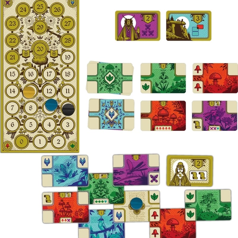 Im Spiel beginnt jeder Spieler mit einer einzelnen Karte auf dem Tisch, einer Karte, die eine Kombination der vier möglichen Ressourcen darstellt. Während einer Runde legst du eine Karte aus deiner Hand ab, deren Ecken sich mit einer oder mehreren Karten überschneiden, die du bereits im Spiel hast. Ihre Startkarte hat vier überlappende Ecken, während Ressourcen- und Goldkarten nur drei haben.