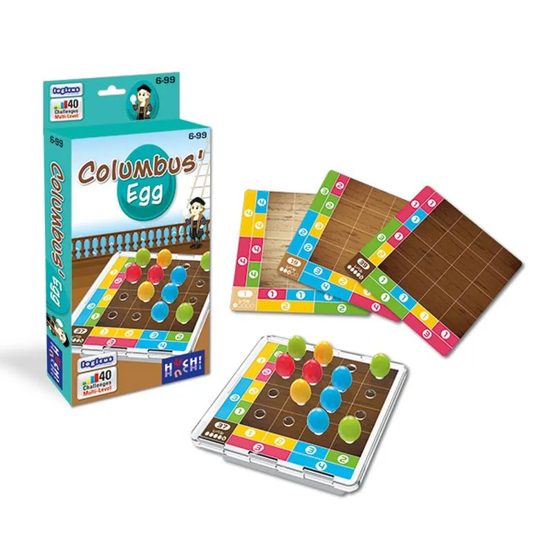 Beim Ei des Kolumbus ist logisches Denken gefragt! Die Eier müssen gemäß den Legeregeln auf die richtigen Felder gesteckt werden. Die Angaben vor den Reihen und unter den Spalten geben Hinweise dazu, wie viele Eier in welcher Farbe in welchem Bereich des Spielplans zu platzieren sind. Doch die Aufgaben werden immer schwieriger! Insgesamt beitet das Logikspiel 40 verschiedene Aufgaben in 4 Schwierigkeitsstufen. Schaffst du es, alle Aufgaben zu lösen? Fang am besten mit einem einfachen Rätsel an und arbeite dich weiter zu den schwierigeren vor. Kommst du gar nicht weiter, kannst du im Lösungsheft nachgucken.