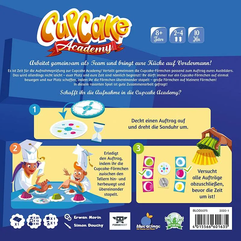Es ist Zeit für die Aufnahmeprüfung zur Cupcake Academy! Verteilt gemeinsam die Cupcake-Förmchen passend zum Auftrag eures Ausbilders. Das wird allerdings nicht leicht – euer Platz und eure Zeit sind nämlich begrenzt! Ihr dürft immer nur ein Cupcake-Förmchen auf einmal bewegen und nur Platz schaffen, indem ihr die Förmchen übereinander stapelt – große Förmchen auf kleinere Förmchen! In diesem rasanten Spiel ist gute Zusammenarbeit gefragt!