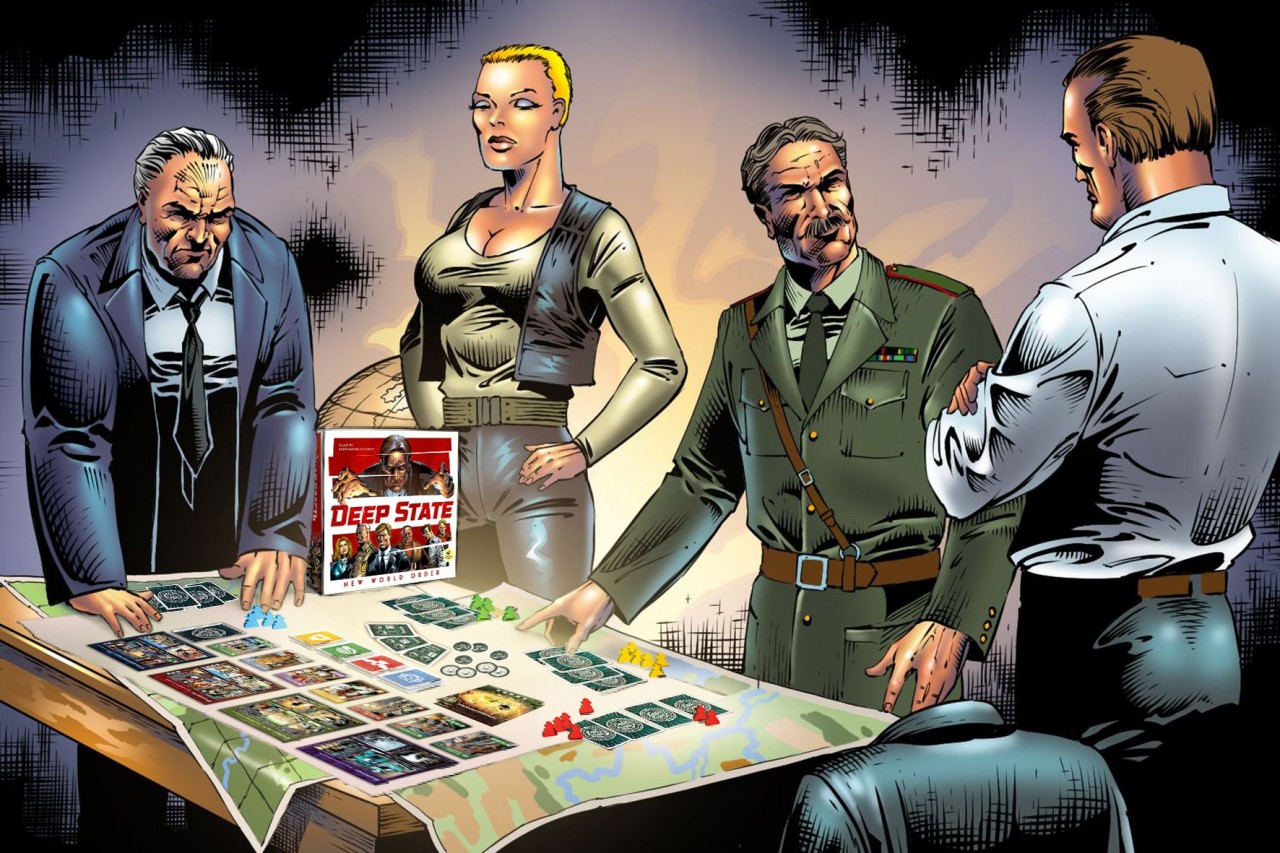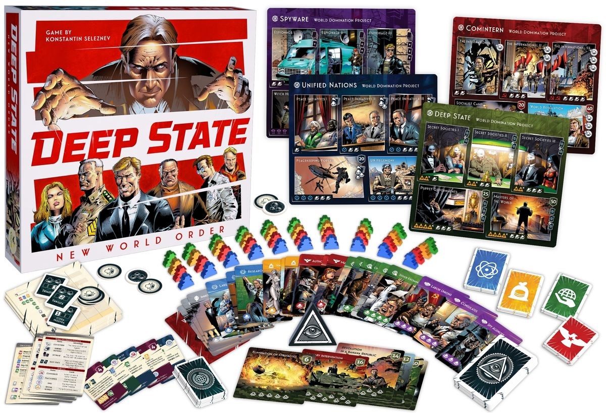 Deep State: New World Orderis a dystopian game of world domination and global conspiracies. The game takes place over several rounds, and in the course of a round, players begin with the action phase, which is followed by the takeover phase. Those two phases repeat, then at the end of the round comes the treaty phase.