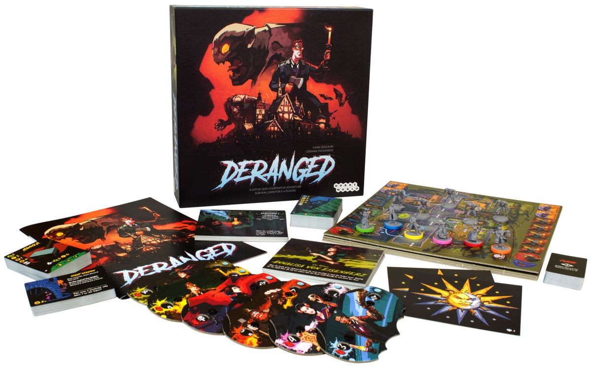 Derangedis a semi-cooperative adventure game in the vein of a dark fantasy. The Heroes end up in a small town driven by evil forces, and in order to survive several horrible nights and leave the town at the break of dawn, they will have to fight unimaginable monsters, each other, and … their own inner demons.