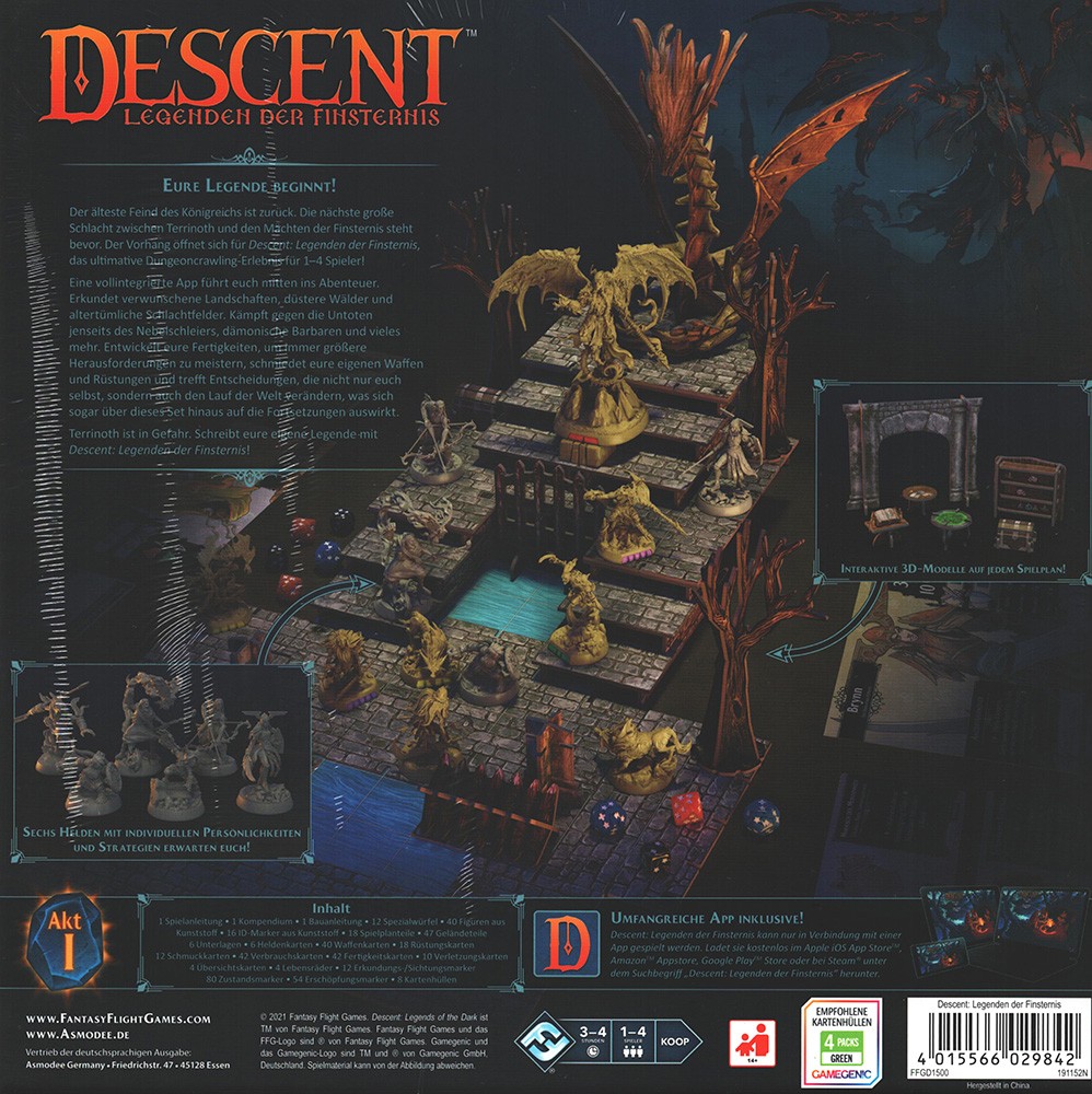 Schreibt eure eigene Legende und taucht gemeinsam mit Freunden in die lebhafte Fantasywelt Terrinoth ein. Mit seiner vollintegrierten, kostenlosen App versetzt Descent: Legenden der Finsternis jeden von euch in die Rolle eines jungen Helden mit individuellen Fähigkeiten und eigenem Spielstil. Gemeinsam mit euren ungewöhnlichen Weggefährten geratet ihr in ein unerwartetes Abenteuer – das erste von sechzehn Szenarien, welche die Kampagne „Blut und Feuer“ bilden. Im Laufe der Kampagne werdet ihr gegen viele schreckliche Feinde kämpfen: Untote, die im Nebel lauern, dämonische Barbaren aus der Wildnis und noch schlimmere Bedrohungen. 46 stimmungsvolle 3D-Geländeteile sowie 40 atemberaubende Helden- und Monsterfiguren versetzen euch voll und ganz in die Spielwelt. Das Abenteuer eures Lebens erwartet euch!