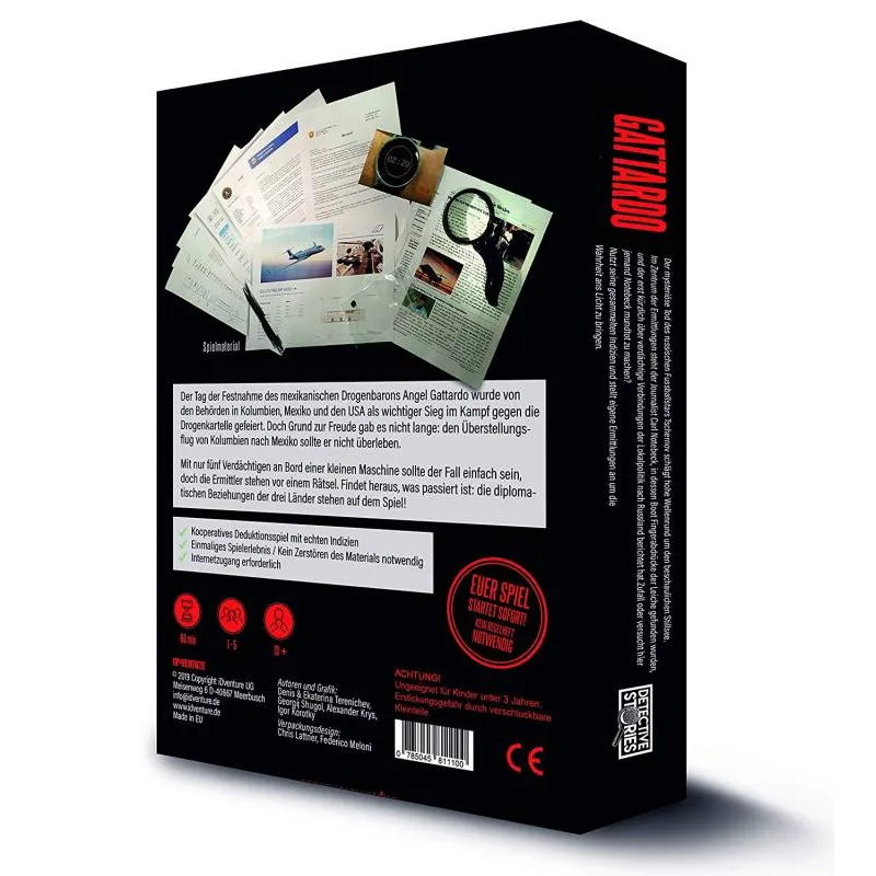 Der Tag der Festnahme des mexikanischen Drogenbarons Angel Gattardo wurde von den Behörden in Kolumbien, Mexiko und den USA als wichtiger Sieg im Kampf gegen die Drogenkartelle gefeiert. Doch Grund zur Freude gab es nicht lange: den Überstellungsflug von Kolumbien nach Mexiko sollte er nicht überleben. Mit nur fünf Verdächtigten an Board einer kleinen Maschine sollte der Fall einfach sein, doch die Ermittler stehen von einem Rätsel. Findet heraus, was passiert ist: die diplomatischen Beziehungen der drei Länder stehen auf dem Spiel! Das Spiel ist als realistischer Kriminalfall ausgedacht und erfordert Untersuchungen ähnlich denen, die von der Kriminalpolizei im wirklichen Leben durchgeführt werden.
